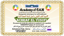 خريج أكاديمية كام العالمية للطب التكميلي والرعاية الذاتية.