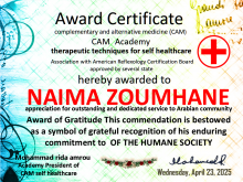 - حاصلة على شهادات في الحجامة، الفوطة النارية، والمساج العلاجي