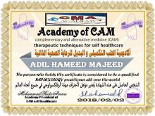 معالج حاصل على شهادات معتمده من مجلس الشهادات العليا الامريكي ضمن الطب التكميلي والبديل تحت رعاية منظمة الصحة العالمية أكاديمية