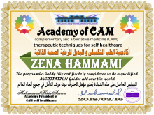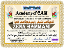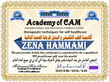 - معالجة معتمده من أكاديمية الطب التكميلي والبديل تحت رعاية منظمة الصحة العالمية.