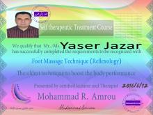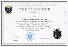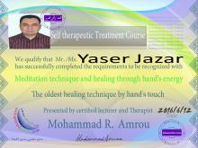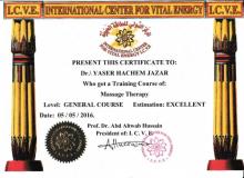 ماستر في العلاج بالأكيوبرشر (الضغط) من المعهد الأمريكي للأكيوبرشر، ماستر في التشخيص والعلاج بالطب الأصيل، ماستر في العلاج بالأعشاب ، ماستر في العلاج بالبرانا هيلنغ وطاقة تشي وماستر في العلاج الفيزيائي الطبيعي والتنويم الإيحائي والريكي، وماستر في تقنية الحرية النفسية.