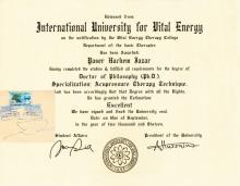 ممارس معتمد من مجلس الشهادات العليا الأمريكي للطب التكميلي والبديل تحت رعاية منظمة الصحة العالمية بإشراف