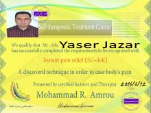 في السوجوك والرفلوكسولوجي، وتقنية نيت لإزالة التحسسس، وتقنية TFT الرائعة لإزالة المشاعر السلبية وعلاج العديد من الأمراض، والعلاج باللمسة والتأمل.
