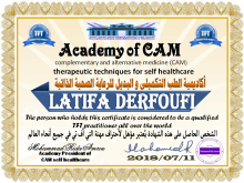 اختصاصية الرعاية الصحية الذاتية معالجة حاصلة علي شهادات معتمدة من مجلس الشهادات العلي الامريكي ضمن الطب التكميلي و البديل تحت رعاية منظمة الصحة العالمية CAM academy