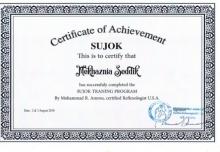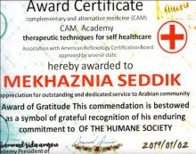شهادة في العلاج بالرفلكسولوجي من البورد الأمريكي مع المدرب الدولي والأول في تخصصه عربيا الأستاذ محمد رضى عمرو من لبنان.