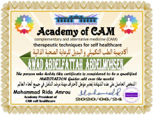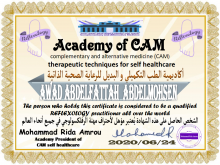 من الحاصلين على منهج الرعاية الصحية المعتمد من أكاديمية الطب التكميلي والبديل للرعاية الصحية الذاتية وبرعاية من منظمة الصحة العالمية ومجلس شهادات العليا الأمريكي