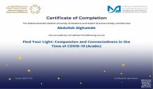 حاصل على شهادة من جامعه محمد بن راشد للطب والعلوم الصحية في