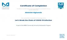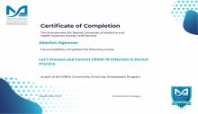 حاصل على عدة دورات من منظمة الصحة العالمية عن امراض كرونا المستجد وطريقه الوقاية منها