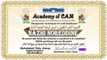 حاصل على الديسك التعليمي وأعالج جميع المشاكل الصحية والنفسية و المشاكل الناتجة عن الحساسية وأستخدم الحجامة وتقويم العمود الفقري والفوطة النارية قبل أخذ دورات الديسك.