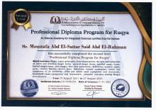 - حاصل على دبلوم عالي في (الدورات في الرقية الشرعية)