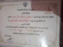 - حاصل على دار القرآن شعبة دعوة ( دولة الكويت )
