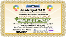 - حاصل على الديسك التعليمي ( مع اجادة التقنيات التي ما بداخلة تقنية السوجوك ، تقنية الرفلكسولوجي ،تقنية الحقل الفكري EFT , TFT ، تقنية علاج الحساسية NAET... )