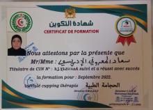 متخصصة في اساسيات التمريض الأولية و حاصلة على شواهد من الأكاديمية البلجيكية palais de zanoubia وحاصلة على الديسك التعليمي منهج العلاج الذاتي الذي يشمل: