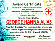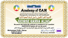 - حاصل على درجة جراند ماستر في راكي، وخبير في الريكي الركي الروسي والفرعوني، والاكسس بارز، والتنويم الإيحائي، وماستر براسكولوجي، وماستر طاقة حيوية.