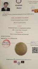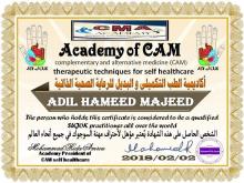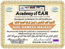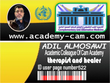 معالج حاصل على شهادات معتمده من مجلس الشهادات العليا الامريكي ضمن الطب التكميلي والبديل تحت رعاية منظمة الصحة العالمية أكاديمية