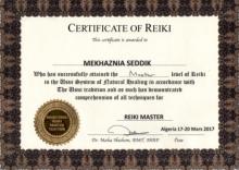 – ماستر ريكي: مدرب في العلاج بالطاقة الحيوية من المنظمة الدولية لمحترفي الطاقة الكونية بالولايات المتحدة الأمريكية.