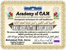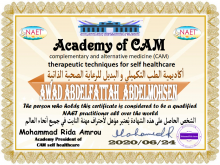 من الحاصلين على منهج الرعاية الصحية المعتمد من أكاديمية الطب التكميلي والبديل للرعاية الصحية الذاتية وبرعاية من منظمة الصحة العالمية ومجلس شهادات العليا الأمريكي